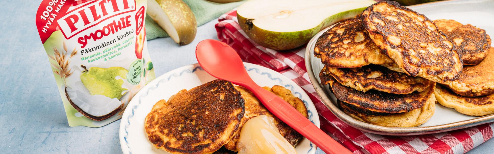 Kun tekee mieli tarjota jotain helppoa ja hyvää, nämä pienet pannukakut ovat nappivalinta. Banaani ja PILTTI smoothie makeuttavat taikinan ilman lisättyä sokeria ja kaura tuo siihen hyvää rakennetta ilman vehnää. Pehmeät pannukakut valmistuvat hetkessä ja maistuvat yhtä lailla lapsille kuin aikuisillekin. Jos haluat pannukakuista erityisen paksuja ja kuohkeita, laita leivinjauhetta hieman enemmän. Näin syntyy helposti aamiainen, joka katoaa lautaselta alta aikayksikön!