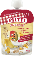 PILTTI Smoothie Banaani, jogurtti, mustikka & kaura 150g on maistuva jogurttipohjainen smoothie yli 1,5 vuoden ikäisille lapsille. Tässä maukkaassa smoothiessa maistuvat makea banaani, raikas mustikka ja täysjyväkaura. Pienille herkkusuille suunniteltu täyteläinen välipala on valmistettu lastenruokalaatuisista raaka-aineista eikä se sisällä lisättyä sokeria.