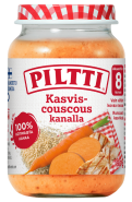 PILTTI Kasvis-couscous kanalla 8kk PILTTI Kasvis-couscous kanalla on maukas ateria porkkanasta, bataatista, kuskusista ja suomalaisesta broilerinlihasta.